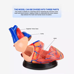 • 1.This model is suitable for general teaching aids in general secondary schools and secondary specialized schools. 2.It mainly enables students to understand the external shape and internal structure of the heart, as well as the large blood vessels related to the heart, and to further understand the pathways of the systemic circulation and pulmonary circulation. 3.Divided into 3 pieces, 4 times magnification. 4.Size: 25*23*23cm 5.Made of PVC 6.Packing: 8 / box, 58 *45*50cm, 16 kgs
