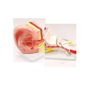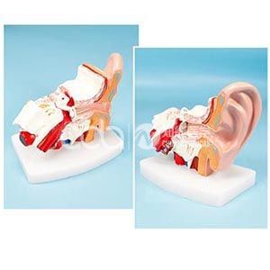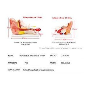 • 1.The mid-ear model shows all the major structures related to hearing and balance. 2.Made of PVC 3.Divided into 2 pieces, 4.3 times magnification. 5.Size: 32*16*11cm .