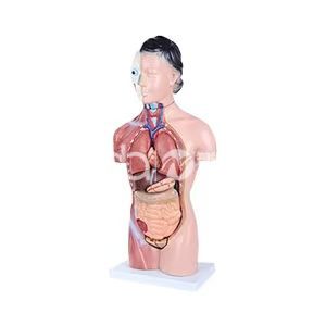 • 1. This is a female torso model, including 15 visceral: torso, head (2), brain, lung, (2), the heart(2), stomach, liver, pancreas and spleen, 2. Kidney, intestine and (2) the female reproductive organs. 3. Made from PVC, placed inside plastic seat. 4. Size: 42 CM.