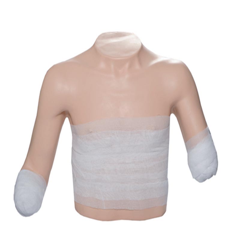 The high level dressing model can simulate the actual situation of an upper limb amputee, including complex wounds and dressing needs. This simulation provides a near-real operating environment for rescue workers, allowing them to train and practice bandaging techniques without directly facing real patients. This kind of training method that simulates the real situation helps rescue workers to better grasp the dressing technology and improve the ability to deal with emergency situations.