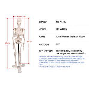 • 1.This small skeleton model features a spring-loaded active chin that can be opened to view the internal structure. 2.The arms and legs are detachable for easy study. 3.Size: 45cm. .