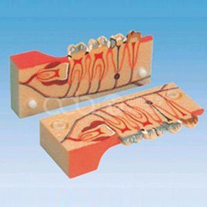 The model by the healthy teeth and pulpitis, periodontitis, caries disease and ready for the packing of the teeth and has teeth with silver amalgam filling the 12 parts, and display the health of teeth and pulpitis, periodontitis, caries and other pathological morphology and clinical treatment.